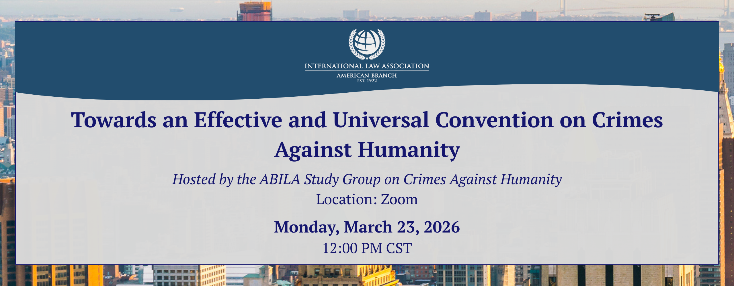 On May 29, 2025, the American Branch of the International Law Association convened the first session of their Study Group on Crimes Against Humanity. The Study Group brings together eminent international law experts and practitioners, with Professor Leila Nadya Sadat, Director of the Crimes Against Humanity Initiative, as their Chair.